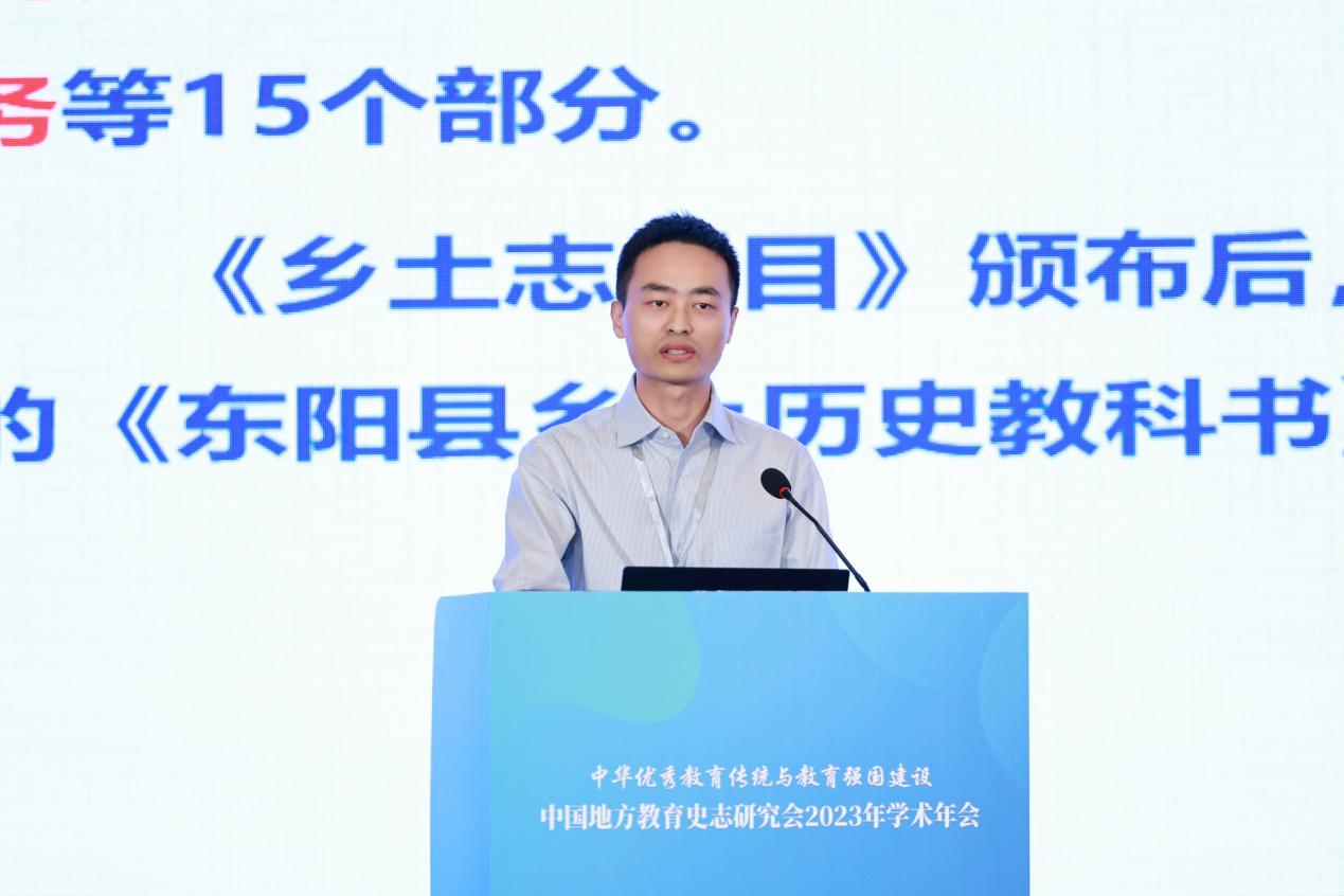 谷亚博士在分论坛一作《由爱乡而爱国:清末乡土教材的核心价值追求》的报告。他在乡土教材文本和教育政策分析的基础上,提出清末推行乡土教材的根本目的是引导儿童“由爱乡而爱国”,在儿童对地方认同的基础上建构其对国家的认同。清末乡土教材中“爱王朝国家”“爱民族国家”等不同的价值追求体现了清末中国国家近代化的不同理想追求及其多重面向。