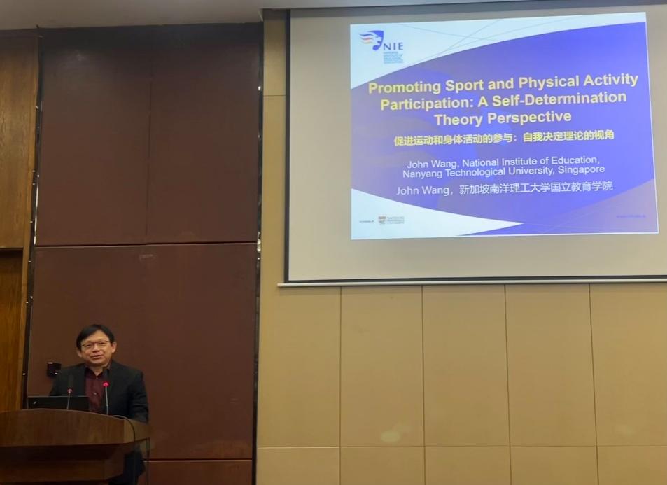 王志庆教授是体育教育与运动科学学术组的首届讲座教授。他曾任新加坡体育协会主席,新加坡南洋理工大学国立教育学院研究生与专业学习系主任,体育教育和运动科学系主任等。王教授是英国心理学会特许心理学家,已经发表了180多篇文章和专著章节,他的作品在国际上被广泛引用。王志庆教授讲座的题目是“Promoting Sport and Physical Activity Participation: Perspectives from Self-Determination Theory”。王教授以自身经历与生动有趣的案例作为切入点,指出身体活动对人们多方面的积极效益,但是很多人都没有达到足够的运动量;而强迫一个人去运动是不现实和不科学的,需要激发个体参与身体活动的动机。由此,王教授引出了行为干预领域一个非常重要的理论,即自我决定理论。自我决定理论中动机是多层面的,5个方面衡量动机的强弱,即方向、持之以恒、强度、坚持和表现,王教授通过生动的例子为听众介绍了何为内在动机、外在动机以及缺乏动机。随后,王教授进一步详细讲解了自我决定理论所包含的6个子理论(基本心理需要理论、认知评价理论、有机整合理论、目标内容理论、因果定向理论、关系动机理论)以及所做的相关研究工作,帮助到场师生更加深入地了解了自我决定理论在体力活动干预中的重要作用。