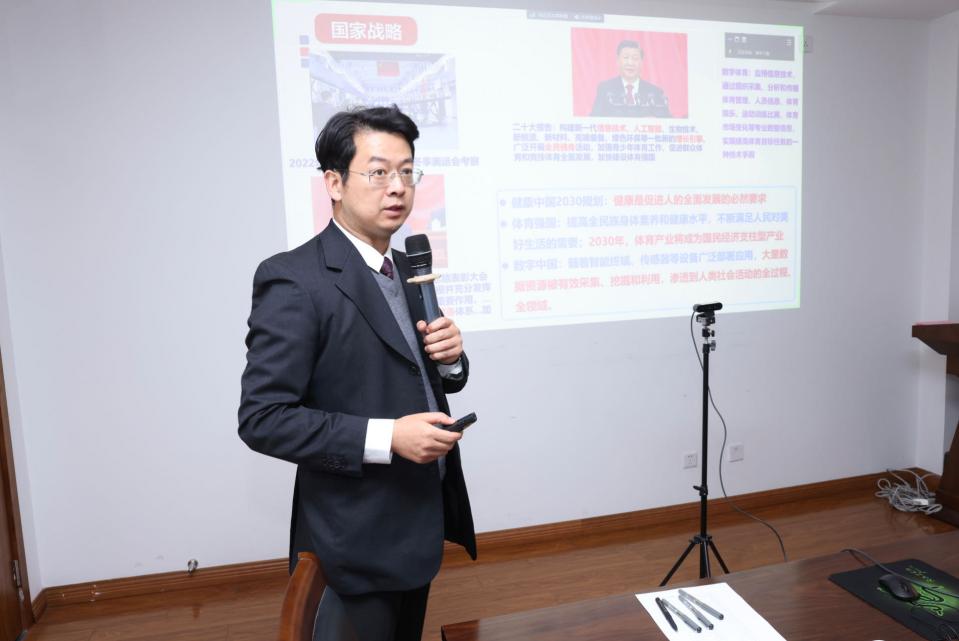 浙江大学教育学院副院长兼体育学系系主任胡亮教授汇报了“数字体育与健康实验室”建设情况。胡亮介绍了实验室的建设背景、建设基础和标志性成果与亮点工作,并强调实验室建设的重点任务要“依托浙大,立足浙大,面向全国,走向世界”,最后提出了发展面临的挑战与建设思路及举措,希望专家们对实验室发展提出建议和意见,共同为我院“小而精,精而强”的数字体育与健康实验室建言献策,为“健康中国”和“体育强国”国家发展战略与浙江数字体育十四五规划服务。