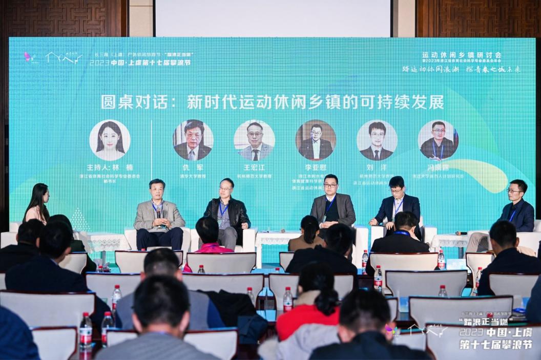 2023年11月18日,中国·上虞第十七届攀浪节·运动休闲乡镇研讨会暨2023年浙江省体育社会科学专业委员会年会在上虞区岭南乡举办,此次研讨会以“踏运动休闲浪潮 探青春之城未来”为主题,来自各级政府、高校、企业等各界的多名代表参会,共研体育产业热点议题,共推岭南乡运动休闲乡镇可持续发展,助力上虞区“青春之城”建设,巩固浙江省运动休闲乡镇建设成果。 我院体育学系教授、世界休闲组织浙江大学休闲卓越中心主任周丽君老师带领我院师生一行10余人参与此次研讨会,助力运动休闲赋能乡村振兴。