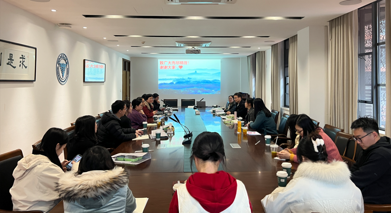 本次活动邀请了浙江大学研究生院学科建设处副处长、学位评定委员会办公室副主任、外国语学院博士生导师梁君英教授作《“四有好导师”——理念与路径》专题分享。学院副院长李艳教授、党委副书记崔倩老师,以及青年教师、相关科室人员共二十余人参加活动,讲座由李艳教授主持。