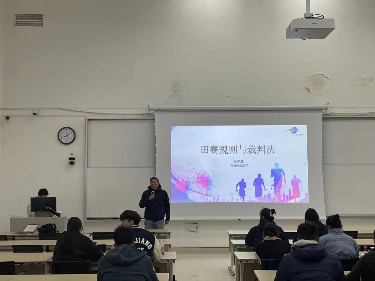 2023年12月28日下午,浙江大学教育学院体育学系田径二级裁判员培训班在浙江大学研究生院306教室开班。田径国家一级裁判、体育学系副教授沈国平老师,浙江省田径协会秘书长王青波老师出席开班仪式,仪式由体育学系丁莺老师主持。