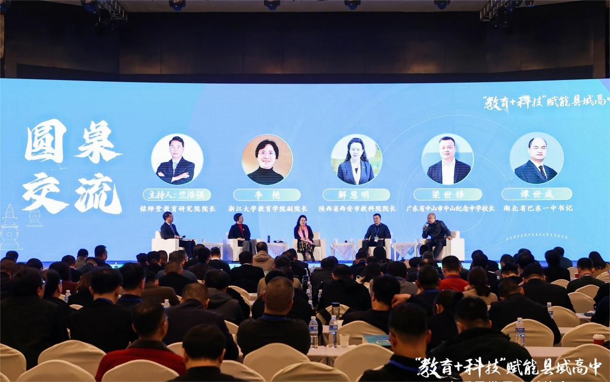 圆桌会议环节,陕西省西安市教科院院长解慧明、浙江大学教育学院副院长李艳、湖北省巴东一中书记谭世成、广东省中山纪念中学校长梁世锋等参加,围绕“如何看待和理解‘教育+科技’这个时代趋势”主题分享观点。