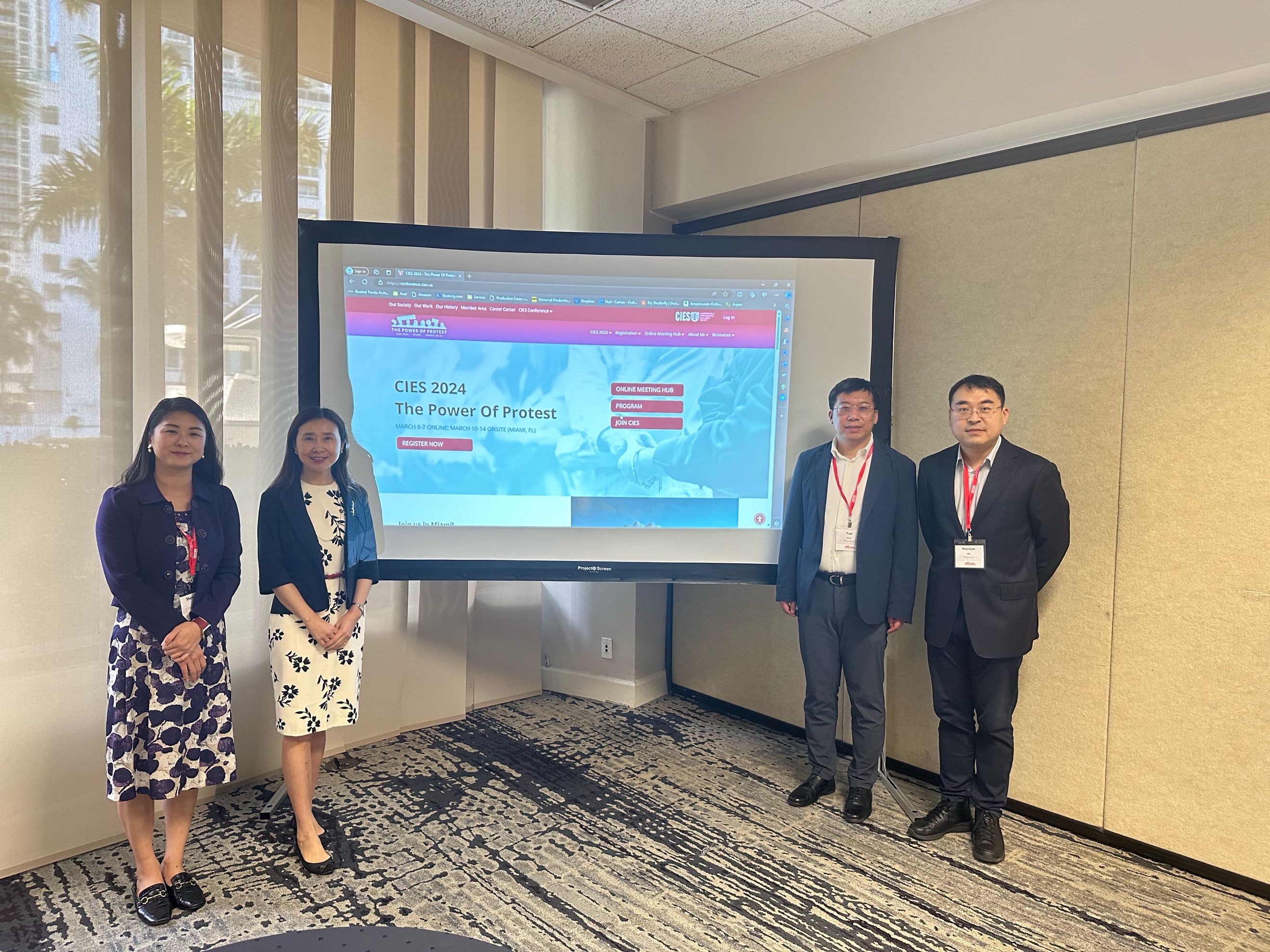 阚阅院长一行首先抵达美国迈阿密,参加北美比较与国际教育学会(CIES)第68届学术年会,并在专题论坛上进行论文报告。北美比较与国际教育学会成立于1956年,致力于引导学术界和实践界关注比较教育,推动跨文化理解和学术进步,是全球47个比较教育学会中规模最大、历史最悠久的学会。本次年会共有来自世界各地1000多所高等院校、政府机构和国际组织的4000多名代表与会。在本次年会上,浙江大学教育学院组织了主题为“面向可持续未来的教育变革对话与合作”(Dialogue and Cooperation in Educational Transformation for Sustainable Future)的专题论坛。专题论坛由美国哥伦比亚大学教育学院中国教育研究中心执行主任程贺南教授主持,浙江大学教育学院院长阚阅教授、“百人计划”研究员吴寒天、副教授何珊云、副教授邵兴江(在线)分别作题为《开放科学与开放教育:公共物品与社会契约?》《双重颠覆情境下的南南高等教育互动》《向谁学习?芬兰、新加坡和中国的基础教育跨国吸引力比较》和《国际合作大学中的跨国学术流动:动机与专业发展》的学术报告。报告人还与与会代表就教育改革、跨文化交流和全球教育发展等议题进行了互动交流。