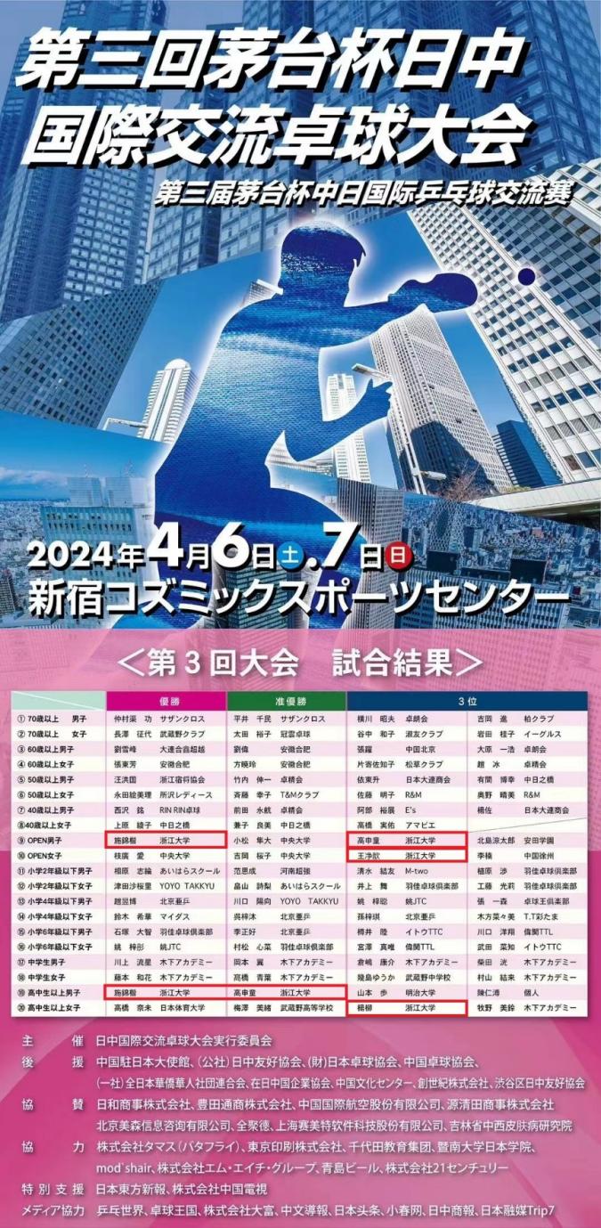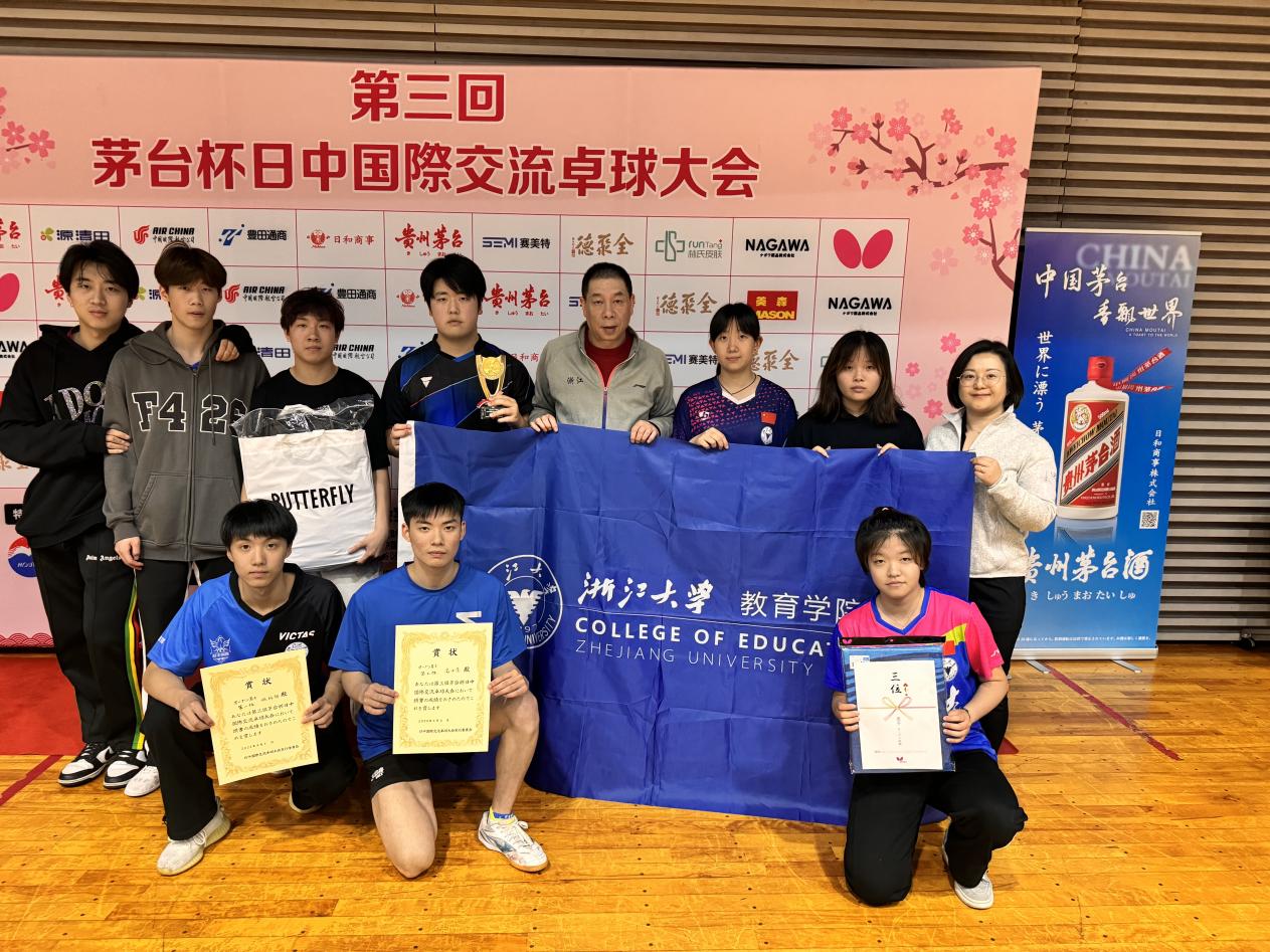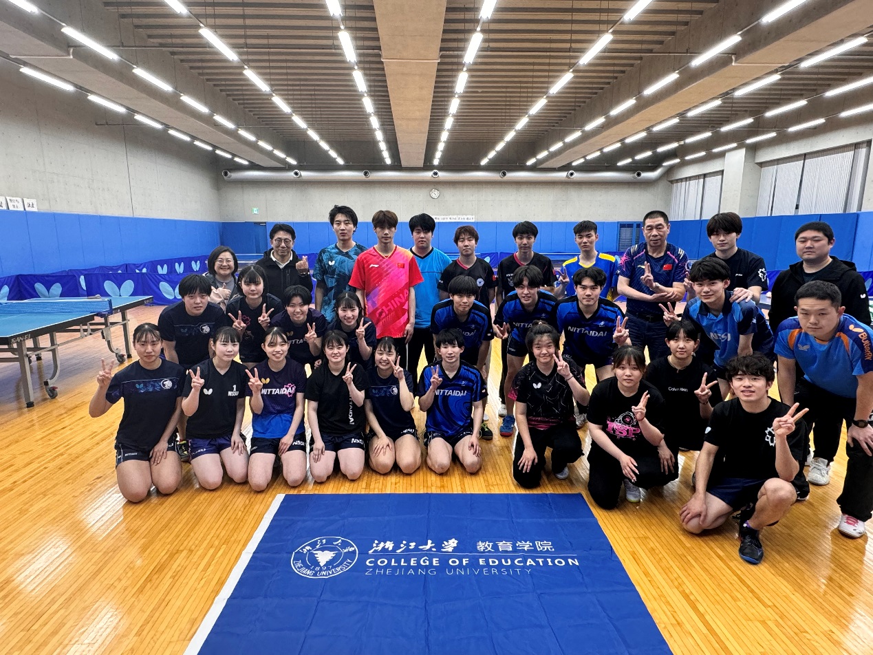 4月4日至9日,浙江大学教育学院体育学系师生一行赴日本参加第三届“茅台杯中日国际乒乓球交流赛”。本次代表队共9位运动员,于洁老师担任领队、恽冰老师担任教练。