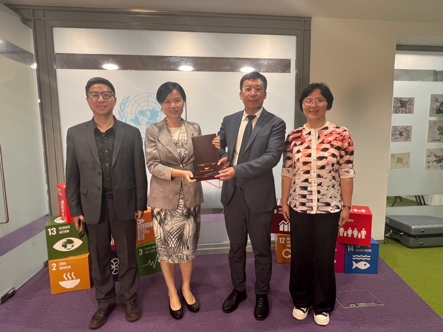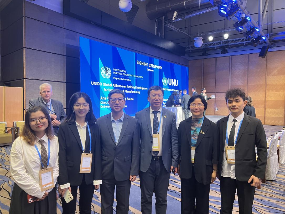 4月24日,学院教师代表团还走访了联合国大学国际软件技术研究所,向黄京波所长赠送了学院礼物,双方一致表示今后要在人工智能教育应用领域等方面加强国际交流与合作。
