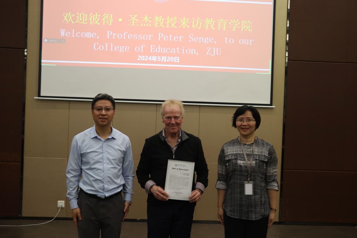 会后,李艳教授和翟雪松研究员向彼得·圣吉教授颁发了感谢信,并探讨了浙江大学教育学院与麻省理工大学未来在科研合作、人才互访等方面的交流等。