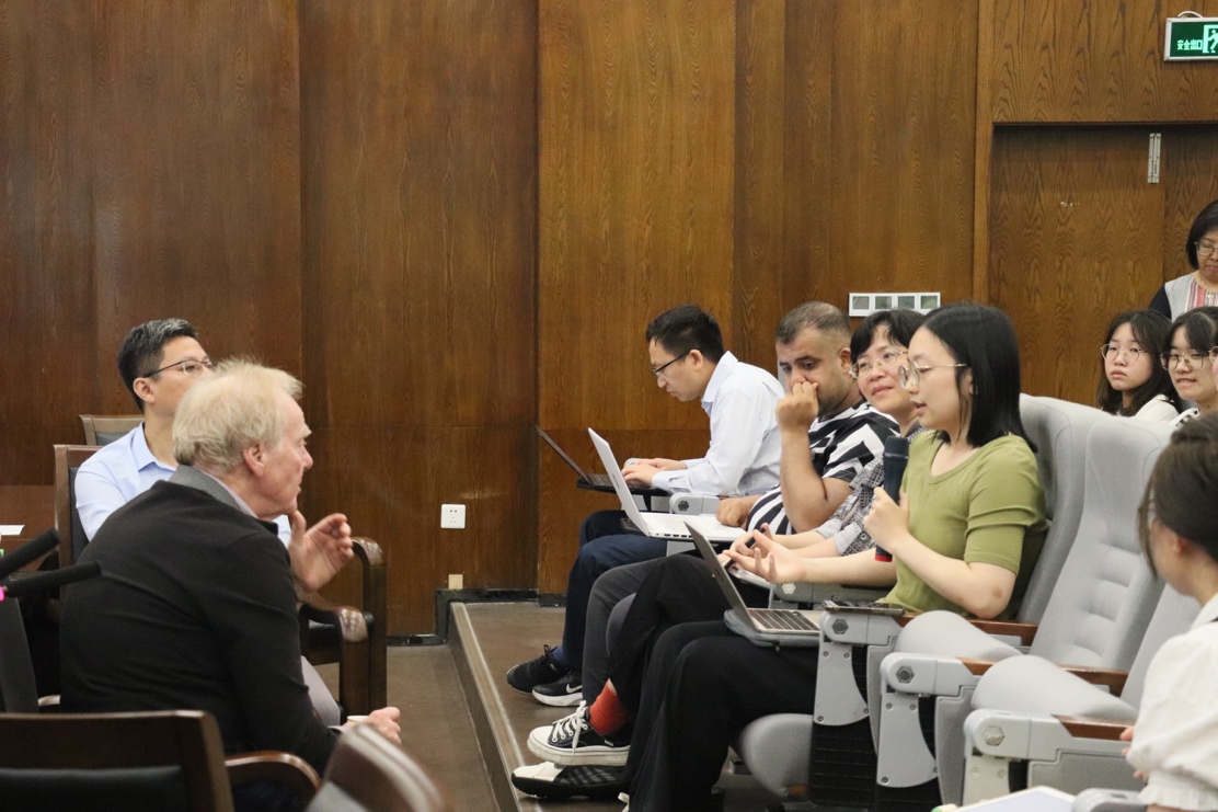 讲座伊始,彼得教授介绍了自己的研究成果,并指出了其研究方向与我院师生研究领域的关联性。随后,彼得教授以一种新型有趣的课堂方式开始了此次讲座,近距离倾听了同学们的对于生成人工智能及其与人类的关系的观点、兴趣、困惑,并从管理学的研究视角分享了对该类问题的看法。老师与学生们提出了多样且新颖的问题,例如:生成式人工智能对人的创造力是否有危害,如何看待人机组织关系中人与机器的信任关系,生成式人工智能对人际交流的影响,怎样能够使得生成式人工智能的结果与反馈更准确智能等。彼得教授通过举例和经验阐述了他对这些问题的理解和回答,并指出了人与人的组织关系是通过故事的萌生、意义的流动建立起来的,而目前人机协作在这方面则较为弱势,因此要正视其在教育中的角色和作用。讲座全过程从学生提问出发,从问答交流中不断加深、拓宽了同学们的思考与收获。
