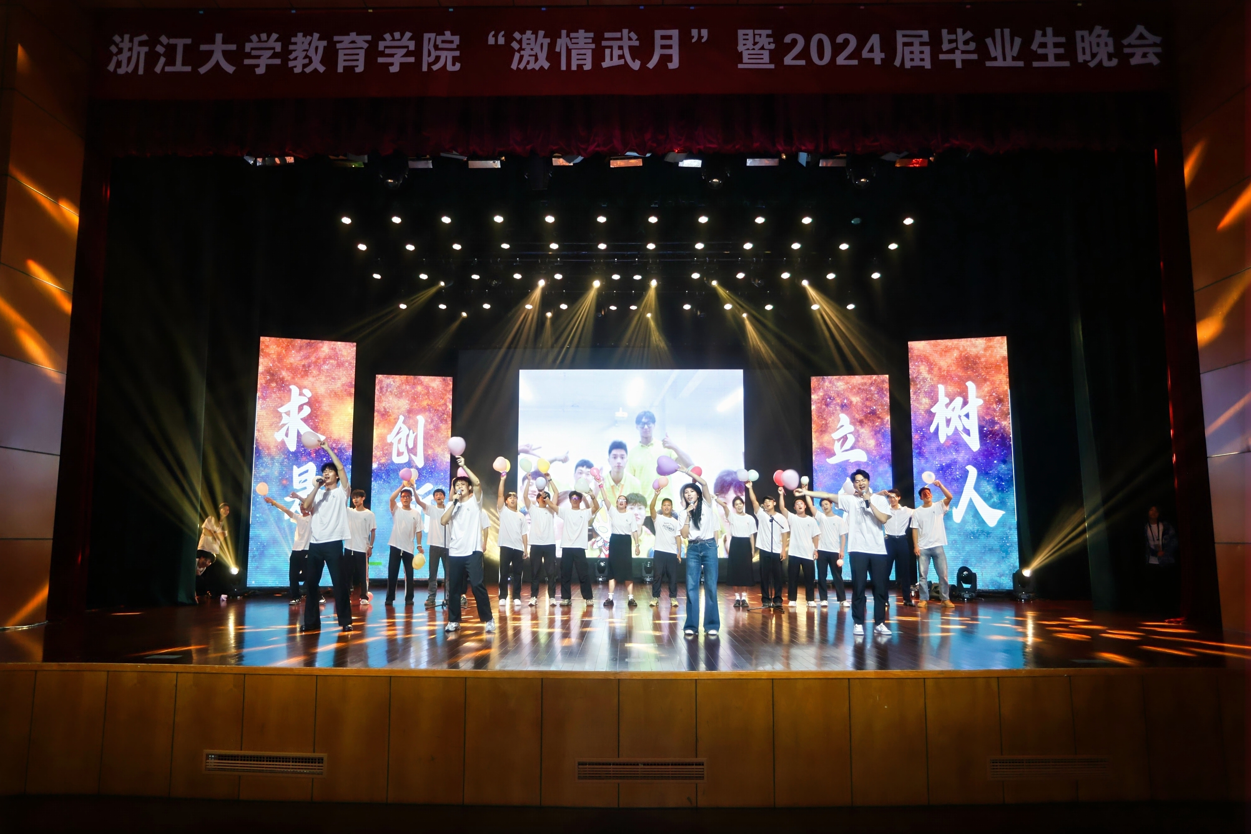2024年6月14日晚,浙江大学教育学院“激情武月”暨2024届毕业晚会在紫金港校区小剧场顺利举行。浙江大学教育学院院长阚阅老师,教育学院党委书记叶晓萍老师,校友林家俊、陈建萍伉俪,校友韩秋女士,校友孙佳风学长以及教育学院教育硕士实践导师,浙江大学附属实验学校、杭州市公益中学校长潘志平老师等出席晚会,出席晚会的还有教育学院副院长孙元涛老师,教育学院副院长兼体育学系系主任胡亮老师,教育学院党委副书记、纪委书记崔倩老师以及2024届毕业生和其他师生代表。