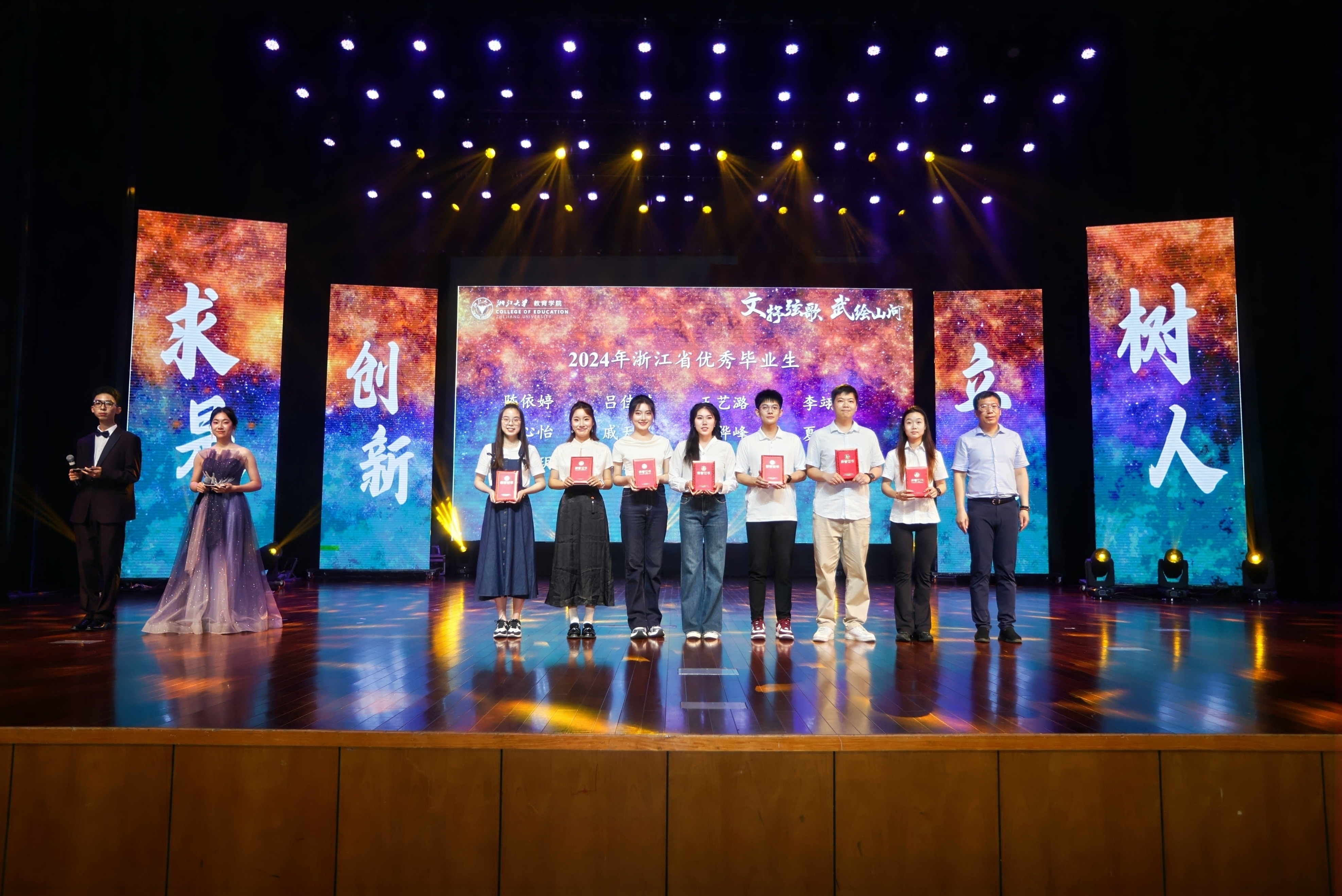 在优秀学生颁奖环节,浙江省优秀毕业生、教育学院优秀学生党支部、教育学院优秀学生共产党员、教育学院优秀学生党支部书记、教育学院第十届梁广榕奖学金获得者接受表彰,并聘任教育学院2024届班级联络员,他们的成就激励着在场的每一个人追求卓越,奋斗不息。