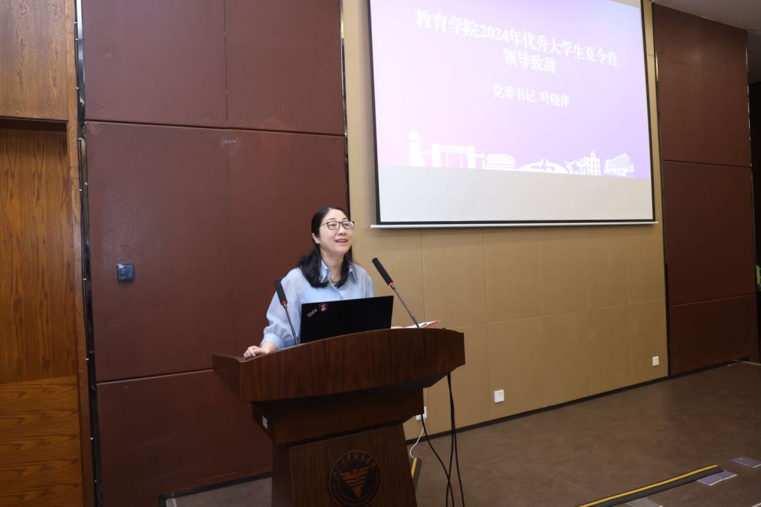 叶晓萍书记首先代表浙江大学教育学院向参加夏令营的同学们表示热烈欢迎,并向营员们介绍了浙江大学和教育学院的历史传承、办学特色与发展现状,勉励同学们要争做有理想、敢担当、能吃苦、肯奋斗的新时代好青年,在推进强国建设、民族复兴伟业中展现青春作为、彰显青春风采、贡献青春力量,奋力书写为中国式现代化挺膺担当的青春篇章。叶书记表示,希望大家在本次夏令营交流中展现出新一代青年自信自强、刚健有为的精神风貌,顺利圆满完成各项任务,学有所获、思有所成、梦有所圆。