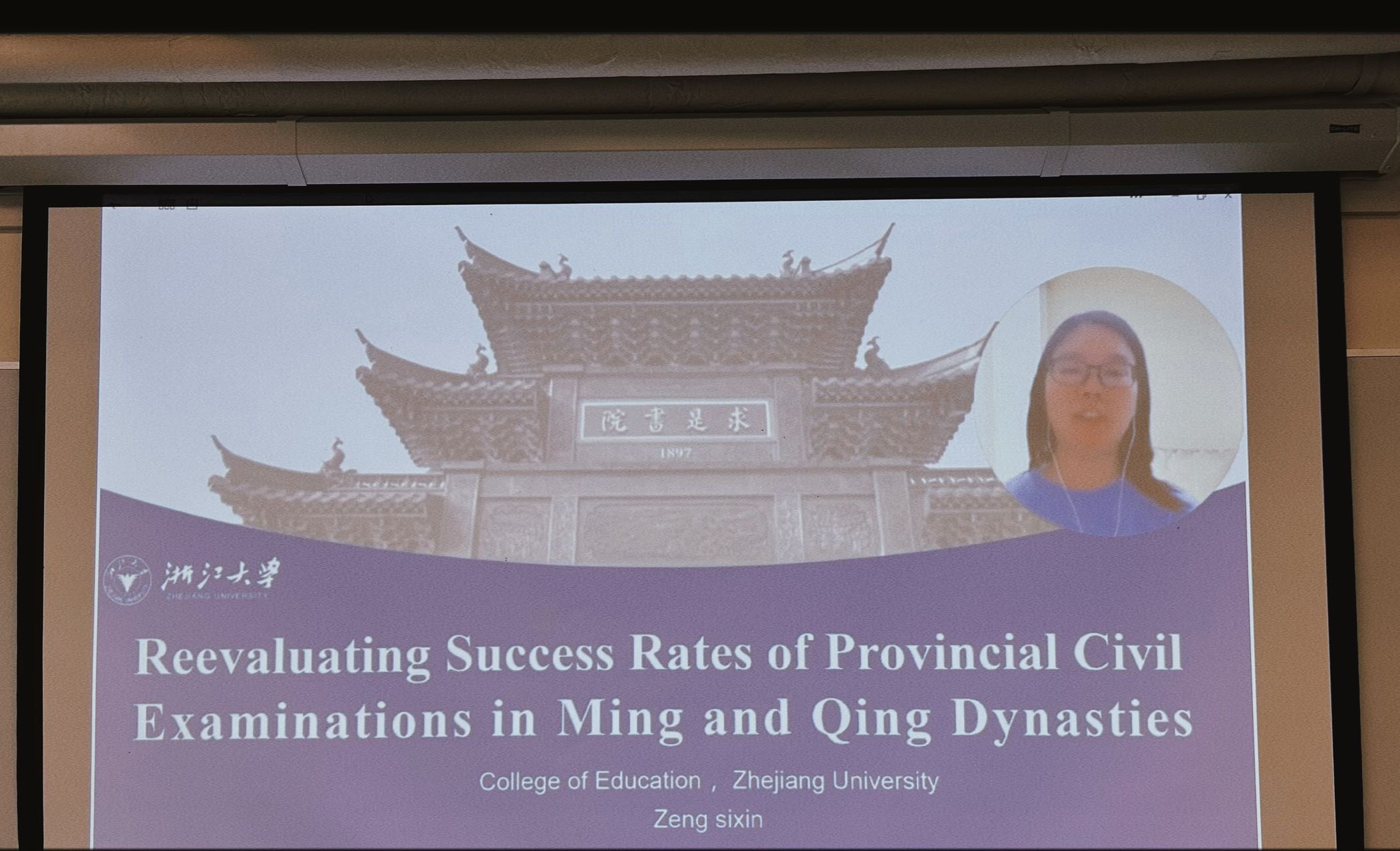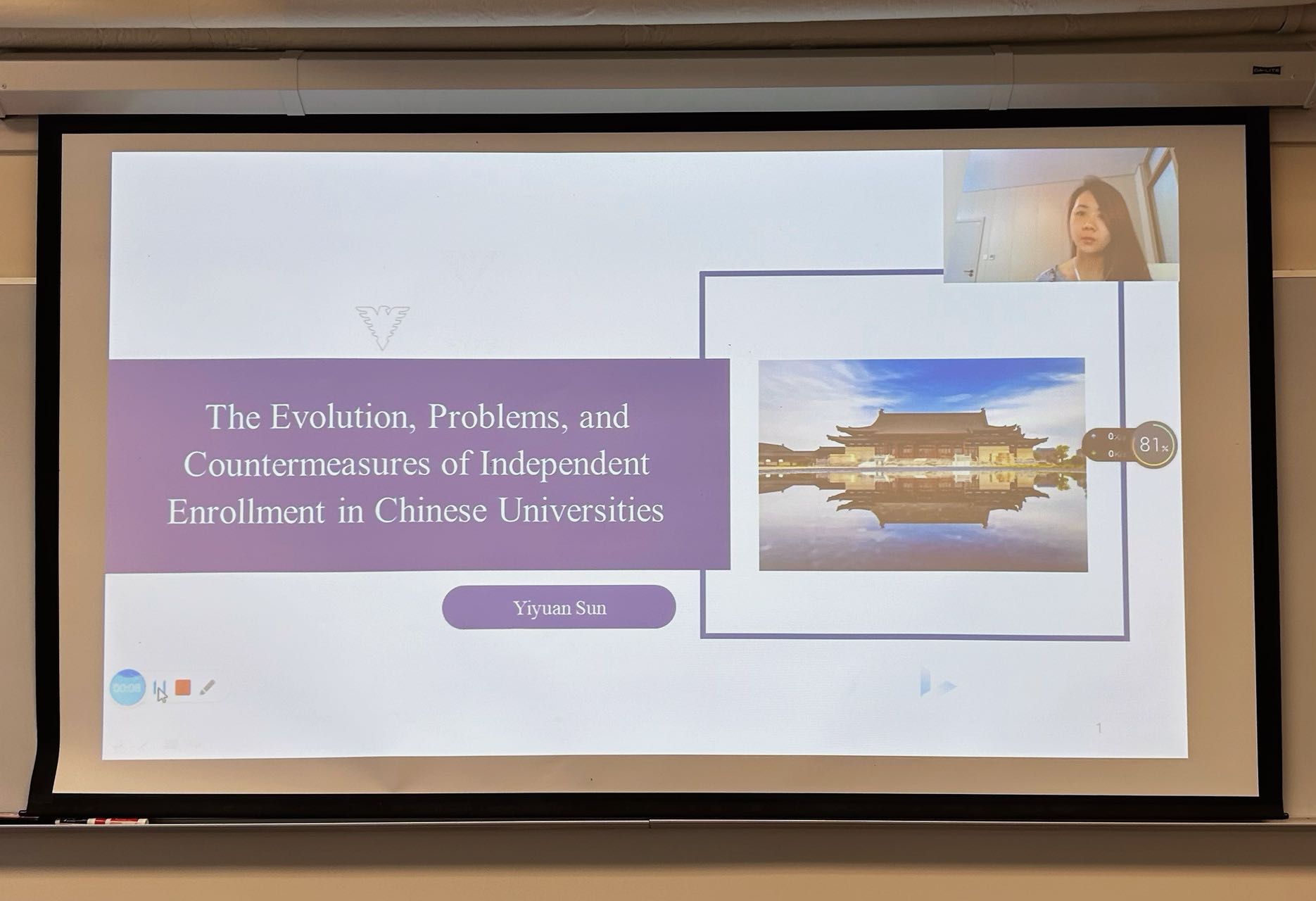 博士生曾思鑫线上报告了《明清科举乡试录取率研究》(Passing Rate of the Imperial Examination at the Provincial Level in the Ming and Qing Dynasties),硕士生孙艺源线上报告了《高校自主宣布录取的嬗变特征、问题及对策》(Characteristics, Problems and Countermeasures of Independent Selection and Admission in Colleges and Universities)。