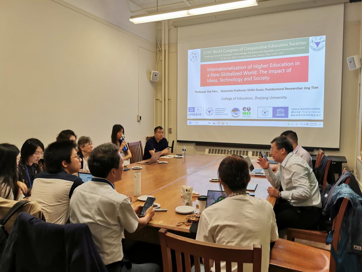2024年7月22日到26日,第十八届世界比较教育大会(XVIII World Congress of Comparative Education Societies)在美国康奈尔大学举行。世界比较教育大会每四年举办一届,本届年会由世界比较教育学会联合会和联合国教科文组织联合召集,主题为“培育包容性的知识生态:教育促进公平和可持续的未来”(Fostering Inclusive Ecologies of Knowledge:Education for Equitable and Sustainable Futures)。此次会议以线上和线下相结合的方式进行,共设有78个平行论坛,来自全球近千名专家学者参会。第十八届世界比较教育大会主席康奈尔大学阿塞-卢蒙巴教授(N’Dri T. Assié-Lumumba)、联合国教科文组织教育助理总干事斯特凡尼亚·贾尼尼女士(Stefania Giannini)、康奈尔大学校长迈克尔·科特利科夫(Michael Kotlikoff)教授,以及康奈尔大学艺术和科学学院院长皮特·洛温(Peter Loewen)教授等致欢迎辞。浙江大学教育学院院长阚阅教授、特聘副研究员段世飞、博士后研究员田京、博士生王维军、曾令琴和苑津山现场参加了此次大会,博士生曾思鑫、硕士生孙艺源线上参加了此次大会。