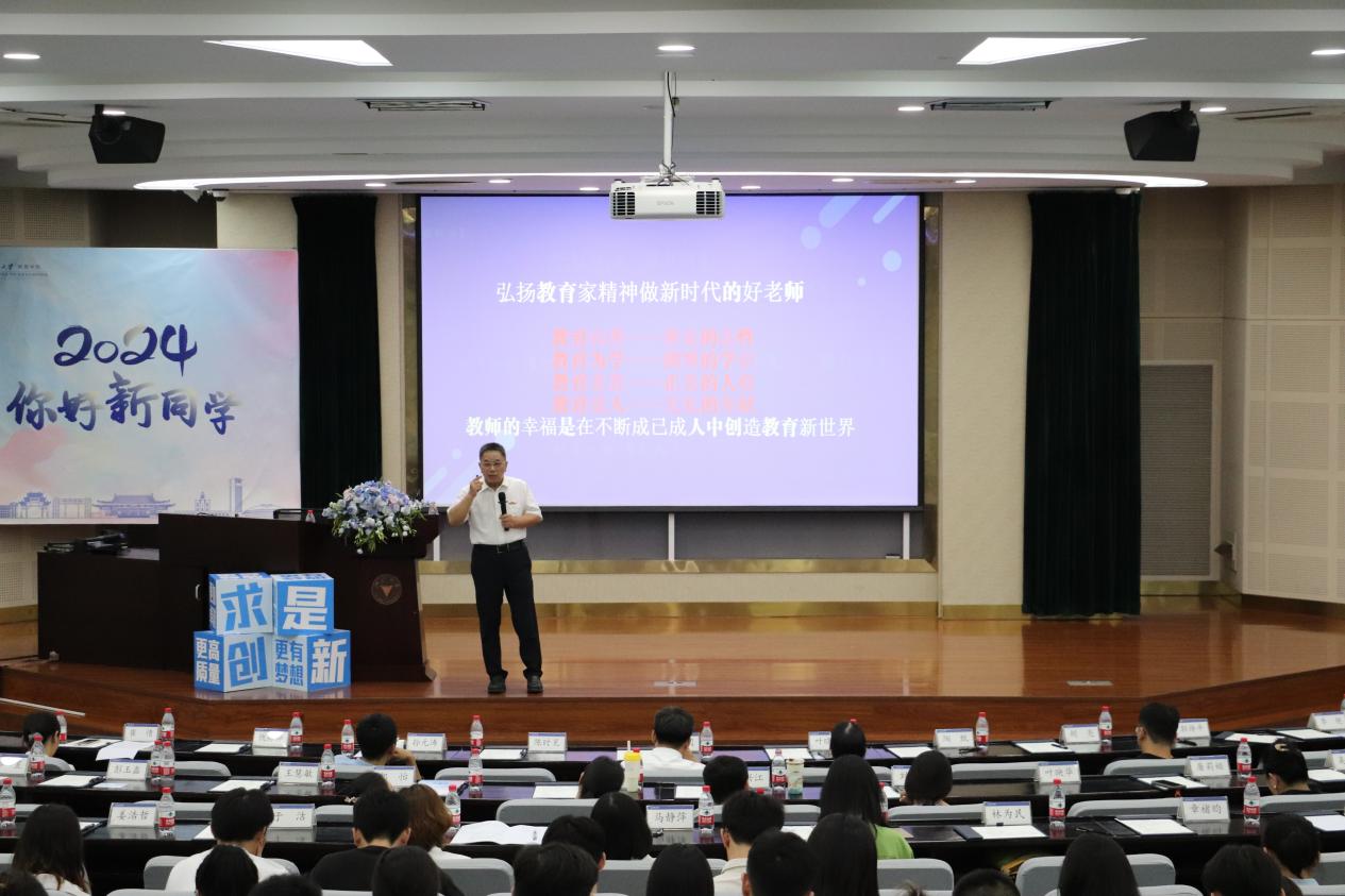 阚阅老师寄语新生,希望大家能做自己的“教育家”,秉承坚韧不拔的意志与无私奉献的精神,为我国教育事业的蓬勃发展贡献力量,以专业素养与公正精神赢得世界的尊重,要敢于跨界融合,勇于创新实践,助力强国伟业。鼓励新生不负韶华,砥砺前行,用实际行动践行教育家精神,回答好竺可桢校长的两问,在推进强国建设、民族复兴伟业中展现青春作为、彰显青春风采、贡献青春力量,奋力书写为中国式现代化挺膺担当的青春篇章。