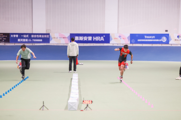 2024年全国大学生轮滑锦标赛在北戴河举行,浙江大学教育学院2024级硕士研究生虞骏颜在速度过桩男子丙组比赛中一骑绝尘,并以4.415s打破男子丙组速度过桩淘汰赛的纪录,摘得桂冠。这一辉煌成绩不仅为学院增添了荣耀,也再次证明了教院体育健儿在全国竞技场上的实力。