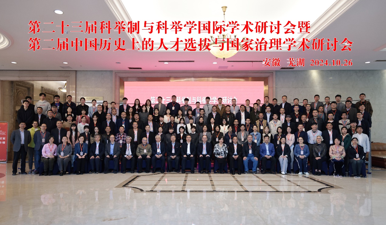 2024年10月25日至27日,由安徽师范大学历史学院、安徽师范大学教育科学学院、中华炎黄文化研究会科举文化研究分会联合主办的“第二十三届科举制与科举学国际学术研讨会暨第二届中国历史上的人才选拔与国家治理学术研讨会”在芜湖海螺国际大酒店成功举办。来自日本学习院大学、越南河内国家大学、韩国首尔大学、韩国高丽大学、韩国学中央研究院、台湾成功大学、台湾元智大学、教育部教育考试院、中国教育科学研究院、北京大学、浙江大学、复旦大学、厦门大学、南开大学、北京师范大学等海内外高校和研究机构,《中国社会科学》、《历史研究》、《中国史研究》、《史学集刊》、人民出版社、中华书局、上海古籍出版社等杂志社与出版社,中国国家博物馆、北京国子监博物馆、南京中国科举博物馆、上海中国科举博物馆等博物馆的160余名专家学者相聚芜湖,参加本届科举制与科举学国际学术研讨会。