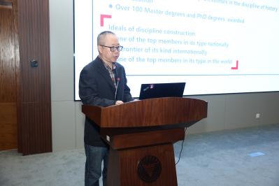 开幕式后的学位授权点报告环节由教育学院副院长李艳主持。教育学院院长、教育学一级学科负责人、教育专业领域负责人阚阅教授向专家组做教育学博士一级学科学位授权点报告。阚阅教授首先向专家组介绍了本次学位点评估的目的与意义,以及三个学位授权点的基本情况,并从学科发展史、学科定位与目标、师资队伍建设、人才培养、科学研究、国际化、社会服务等方面全面报告了学位授权点的发展情况。