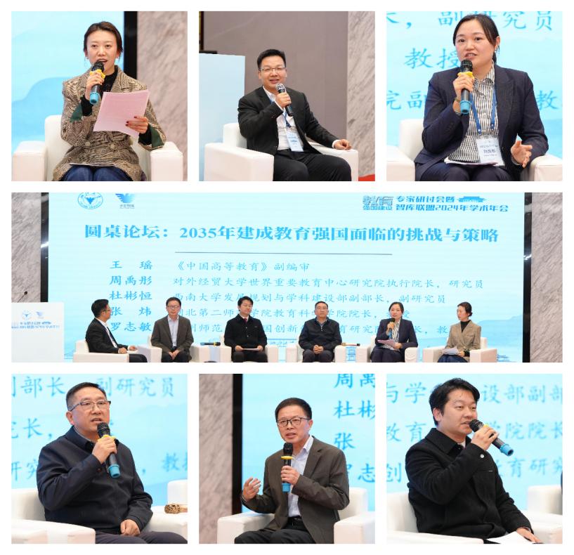 与会专家分别围绕教育强国建设、高校智库建设、教育科技人才一体化、基础学科拔尖创新人才培养、高等教育与创新驱动发展、德育现代化、农村教育发展等议题进行了热烈研讨和交流。