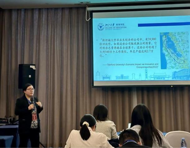 浙江大学教育学院梅伟惠教授、刘淑华教授、张佳教授、邵兴江副教授、“百人计划”研究员吴寒天、特聘研究员段世飞、博士后田京担任平行论坛点评人或主持人,并分别作题为《拔尖创业人才培养的国际经验与本土实践》《俄罗斯青少年补充教育发展模式及其对我国课后教育体系重构的启示》《AI能提高青年科研工作者的职业幸福感吗?一个有中介的调节模型》《社会变迁史与高水平研究型大学的发展轨迹——以加拿大魁北克省麦吉尔大学为例》《穿越高等教育国际化概念的丛林:高等教育国际化研究的批判与反思》《开放学校数据:联合国教科文组织推动教育数字治理的新举措》的报告。