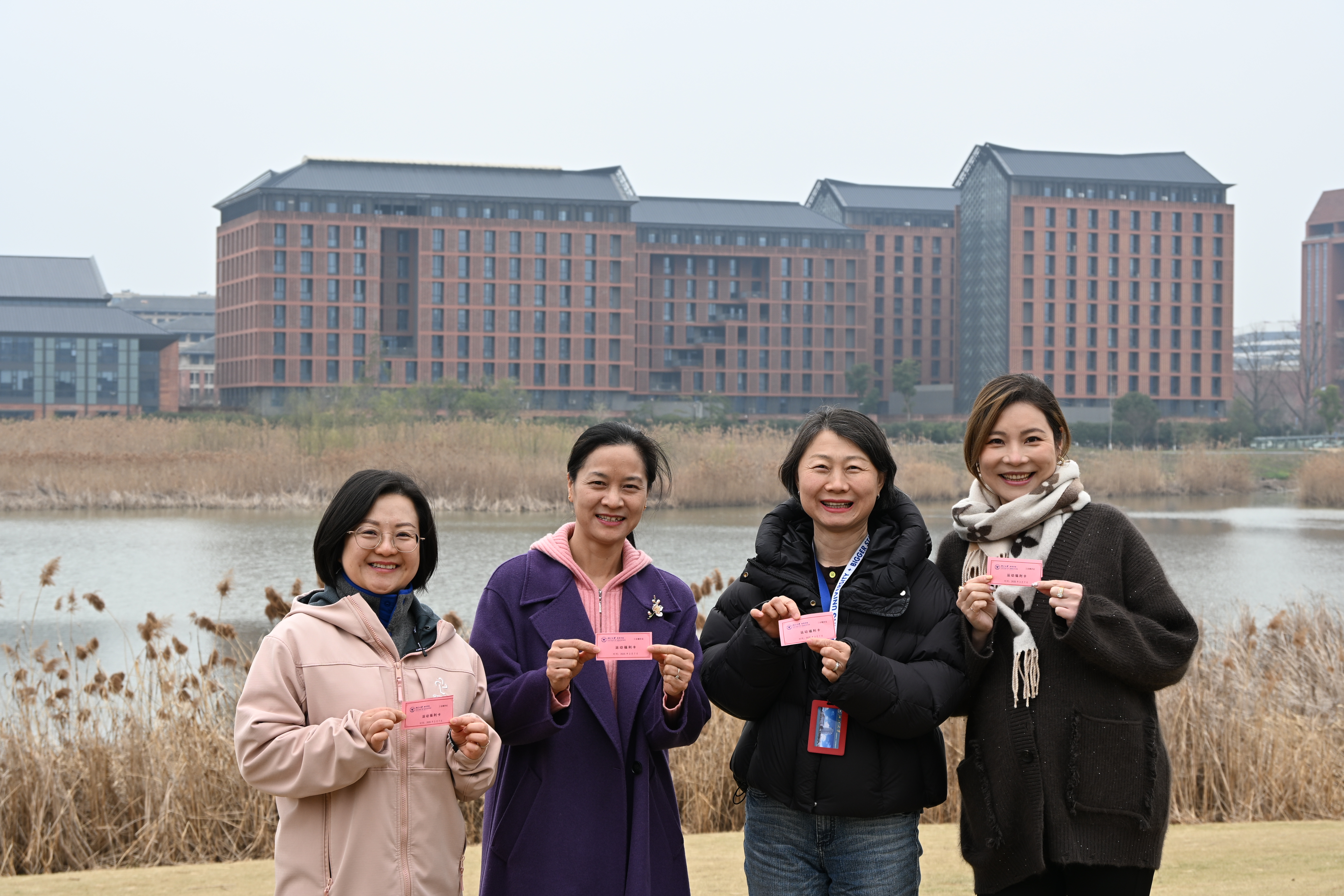 此次活动的路线特别选定为从风景秀丽的文科组团出发,一路行至庄重典雅的求是大讲堂,沿途梅花、玉兰花竞相绽放,为阴天增添了几分生机与活力,也让女教职工们在自然美景与人文景观的交融中享受运动的乐趣。