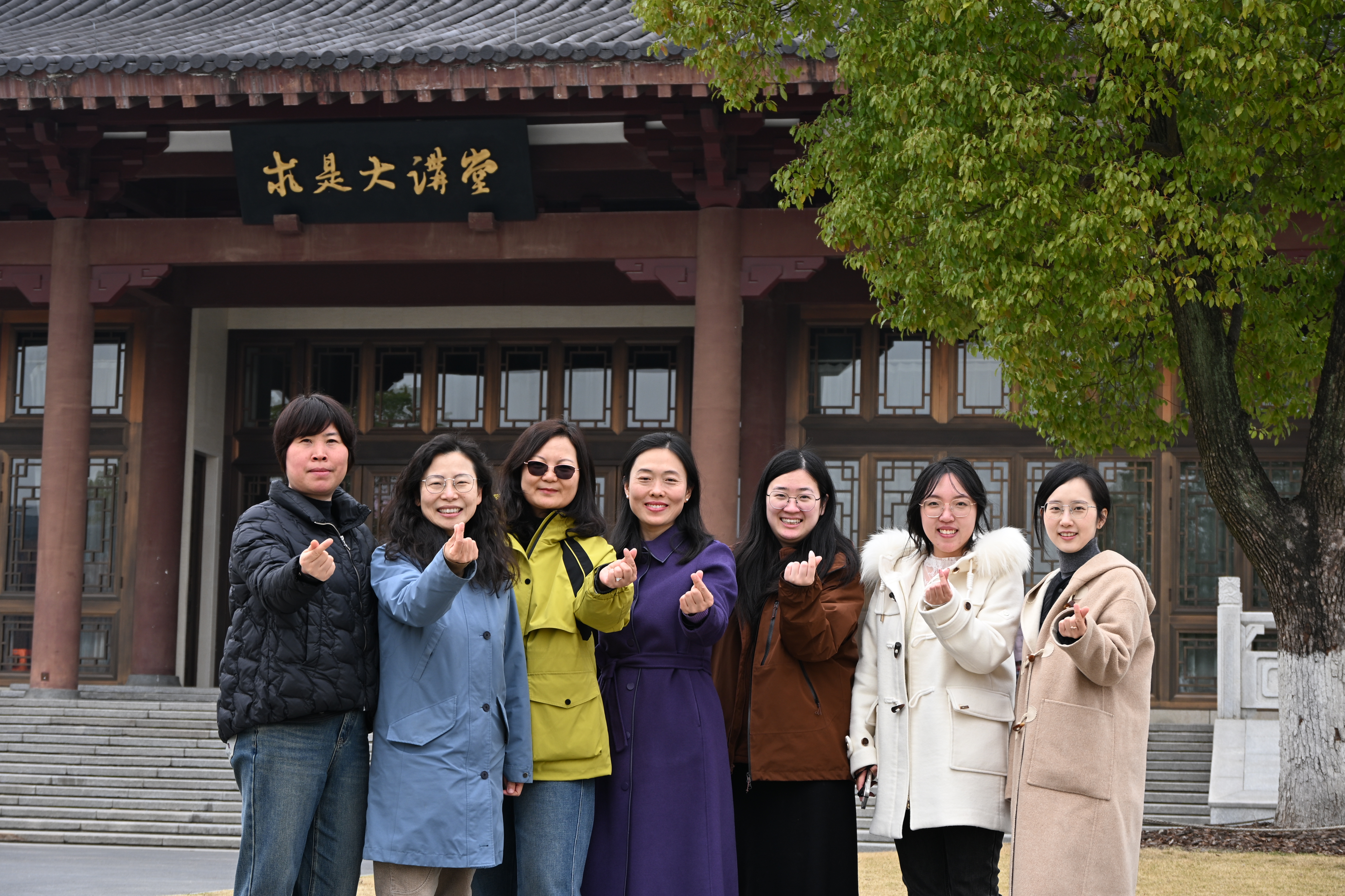 行进中,女教职工们或三五成群,谈笑风生;或独自前行,享受宁静。大家呼吸着新鲜的空气,欣赏着沿途的美景,经过一段时间的徒步,抵达了终点——求是大讲堂。这座充满历史底蕴与现代气息的建筑,仿佛在诉说着浙江大学的辉煌历程与学术追求,激励着每一位女教职工不断前行,追求卓越。