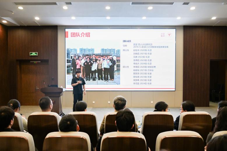 4月11日晚上,教育学院研究生“五好”导学团队答辩评审会在紫金港校区教育学院118报告厅举行。教育学院党委书记叶晓萍,浙江大学教科书研究中心主任、学院学术委员会委员刘正伟,院长助理、教育系主任梅伟惠,体育系党支部书记邱亚君,教育领导与政策研究所党支部副书记黄亚婷,课程与学习科学系副主任、浙江大学教科书研究中心副主任屠莉娅,体育学系副系主任黄聪,研究生教育办公室主任苏洁,团委副书记吴春霆,研究生代表以及各答辩团队师生共同参加评审会。活动由学院党委副书记崔倩主持。