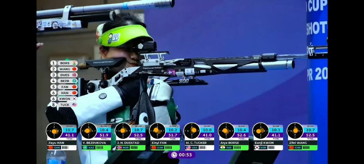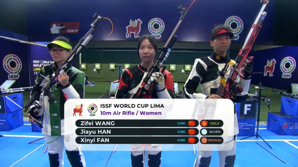 在4月20日结束的射击世界杯秘鲁站女子10米气步枪项目中,教育学院2024级运动训练专业本科生韩佳予获银牌!其队友王子菲、范馨仡分获女子10米气步枪金牌、铜牌。中国队包揽了该项目的前三名。