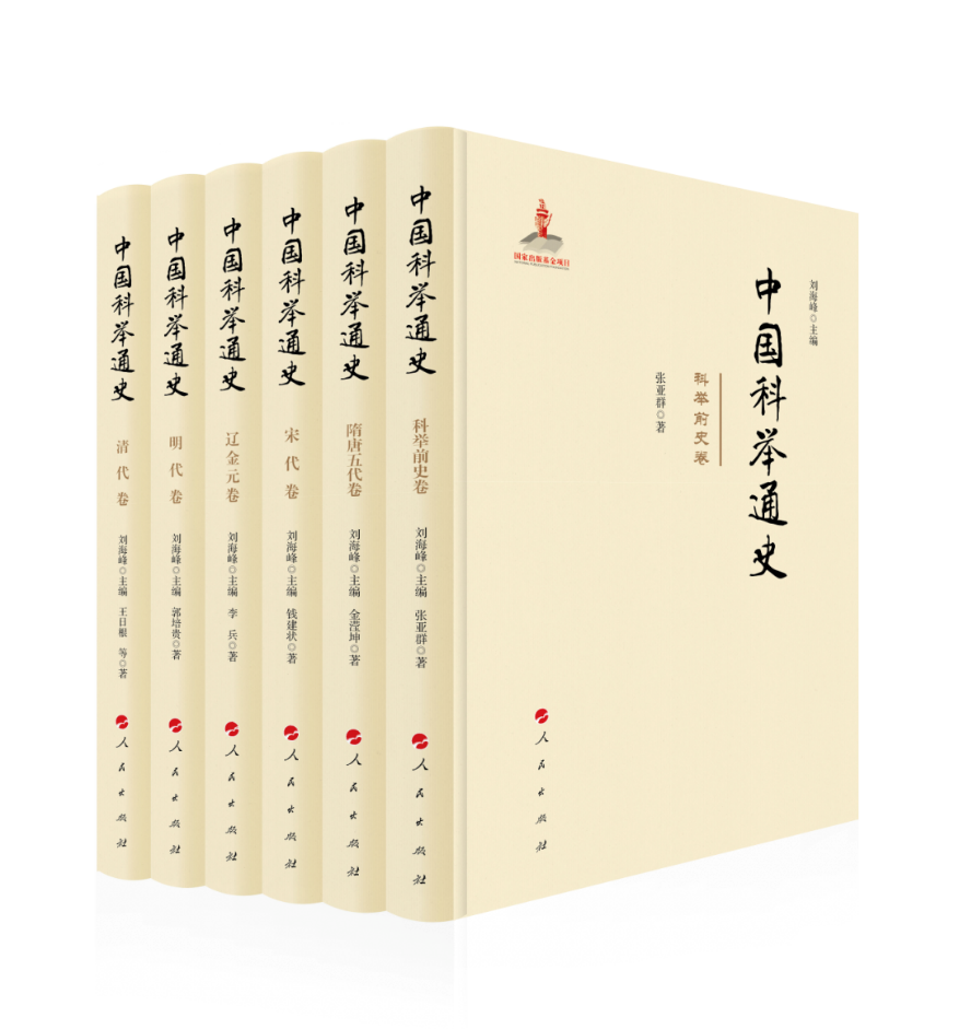 《中国科举通史》撰写出版前后历时11年,于2009年启动,2013年获批教育部人文社会科学重点研究基地重大项目,2018获国家出版基金资助,2020年12月由人民出版社出版。主编刘海峰教授负责全书框架设计、审阅各卷书稿篇章结构并提出修改意见,以及总论、结语、跋的撰写,《中国科举大事年表》的主撰与统合;“科举前史卷”由厦门大学考试研究中心副主任张亚群教授撰写,“隋唐五代卷”由北京师范大学教育学部教育历史与文化学院金滢坤教授撰写,“宋代卷”由厦门大学人文学院钱建状教授撰写,“辽金元卷”由湖南大学岳麓书院李兵教授撰写,“明代卷”由福建师范大学社会历史学院郭培贵教授撰写,“清代卷”由厦门大学人文学院王日根教授等撰写。七位作者包括了教育学、历史学、文学等几个学科的学者,基本上都是中国发表科举研究论文排名前列的学者,是科举学界领先的学者或特别活跃的学者,其中两位还是国务院学位委员会教育学科评议组成员、历史学科评议组成员。