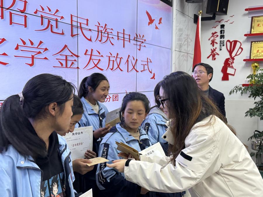 在大凉山深处的四川昭觉,第26届研究生支教团成员、2024届教育学专业本科毕业生王欣阳、赵涵乐正在当地支教,一年来,她们与支教团成员们开展各项物资募捐、结对资助活动,为爱心人士与孩子之间架起了跨越山海的爱心桥梁,“受益孩子们由心露出的笑容,学生们在书桌前认真阅读的神情,这些瞬间给我带来的教育触动都远胜于教科书。”王欣阳说道,“从前总以为我们在为孩子们打开世界的窗,后来才发现,支教的一点一滴都在重塑我们对教育的理解,让我看到了生命的另一种辽阔。”