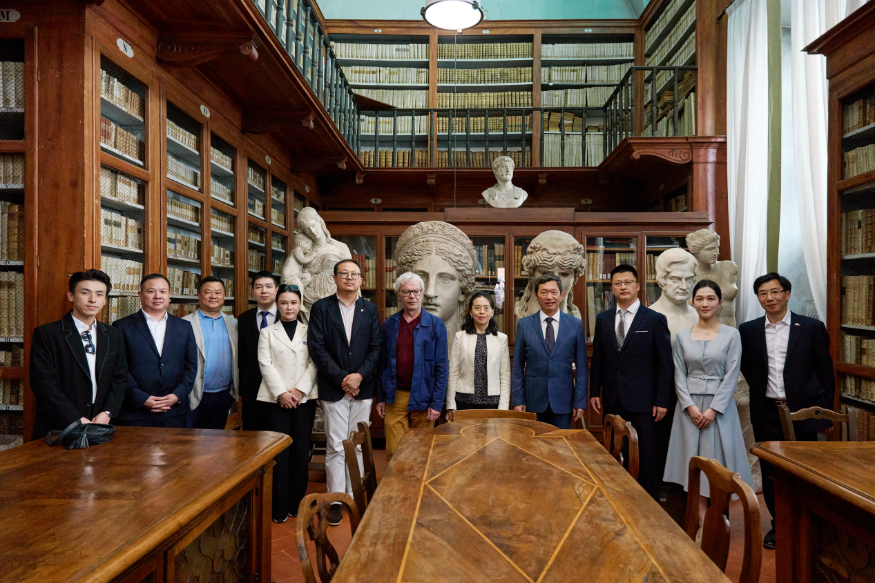 捐赠仪式结束后,乔瓦尼·伊奥万校长陪同与会嘉宾参观了佛罗伦萨美术学院图书馆、教学楼及展览馆等场所,介绍学院的发展历史、校园规划、教学场景、留学生教育、艺术藏品等办学情况。与会各方围绕中意文化交流、人才培养、学术研究等合作领域进行深入交流,并达成进一步合作意向。