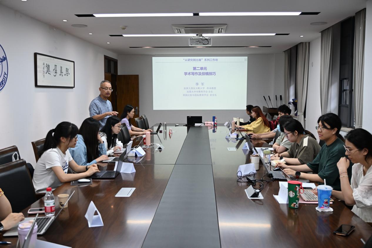 6月10日下午和11日上午,李军教授为教育学院师生进行“从研究到出版”一对一专业辅导。学员就“教师专业发展”“人工智能与技术进步”“高等教育国际化”等话题与李军教授开展深刻讨论,李教授针对学员们的问题提出了指导性意见,学员们受益匪浅。