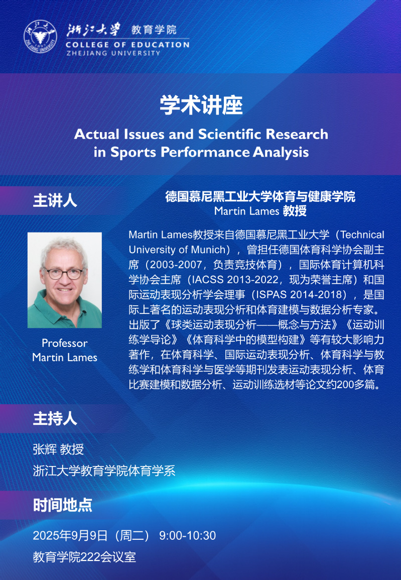 学术预告丨Professor Martin Lames:Actual Issues and Scientific Research in Sports Performance Analysis