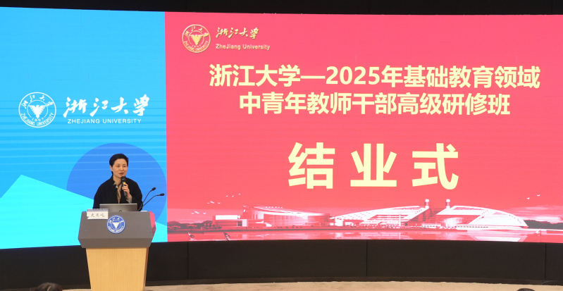 2025年12月25日上午,“2025年基础教育领域中青年教师干部高级研修班”在浙江大学紫金港国际会议中心智云报告厅举行了隆重的结业仪式。拱墅区教育局党委副书记史寒屹、拱墅区教育研究院党委书记兼院长沈旭东、浙江大学教育学院党委书记兼副院长王芳、浙江大学教育学院党委委员兼院长助理邵兴江等领导出席活动并致辞。
