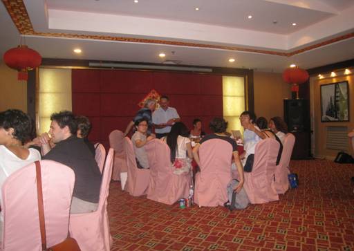 On the night of July 26th, students from both Italy and China, together with Professor Socol Carol and Mei Weihui from the Education Department, all gathered at Lingfeng Restaurant for the dinner party. Halway through, Professor Socol awarded the Italian students their certificates, which excited them so much that some of them began kissing the certificates while others began “showing them off” to their fellow Chinese friends. Fully aware that this gathering was the Italian students’ last formal dinner with the Chinese students in Hangzhou, everyone cherished it with extra value. Games were played and private conversations shared all the students bonded closer than ever before, which had become the best goodbye present for each other.