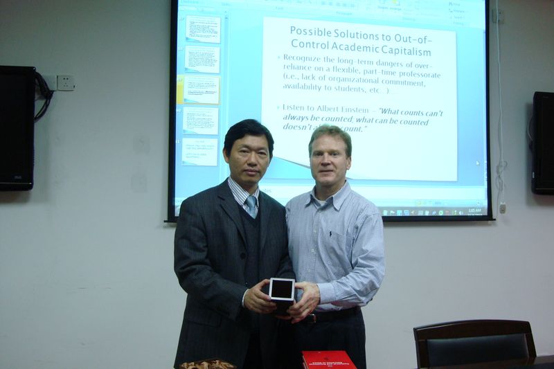 On Nov, 4th, 2010, Professor Robert Rhoads from UCLA was invited to visit the College of Education. He gave two lectures to the faculties and doctoral students in Conference Room 228. The lecture in the morning was on the topic “Global Citizenship and the University: Advancing Social Life and Relations in an Interdependent World”; and in the afternoon it was on “The Entrepreneurial American University: Necessary Marketization or Out-of-Control Academic Capitalism?” Both were hosted by Professor Xu Xiaozhou, the Deputy Dean of the College of Education. The lectures were warmly welcomed, and both were great successes. There were heated discussions with Professor Rhoads after the lectures.