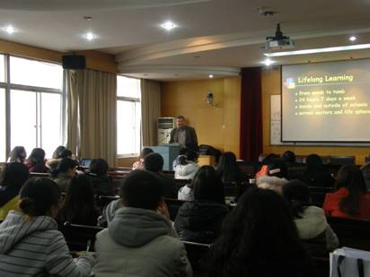 Professor Olsen’s lecture was substantial in content and easy to understand, which further deepened students’ understanding of LLL policy. After the lecture, Professor Olsen engaged in further discussion with the audience on some issues related to how to recognize non-formal and informal learning, the relation between international organization and LLL policy and so on.