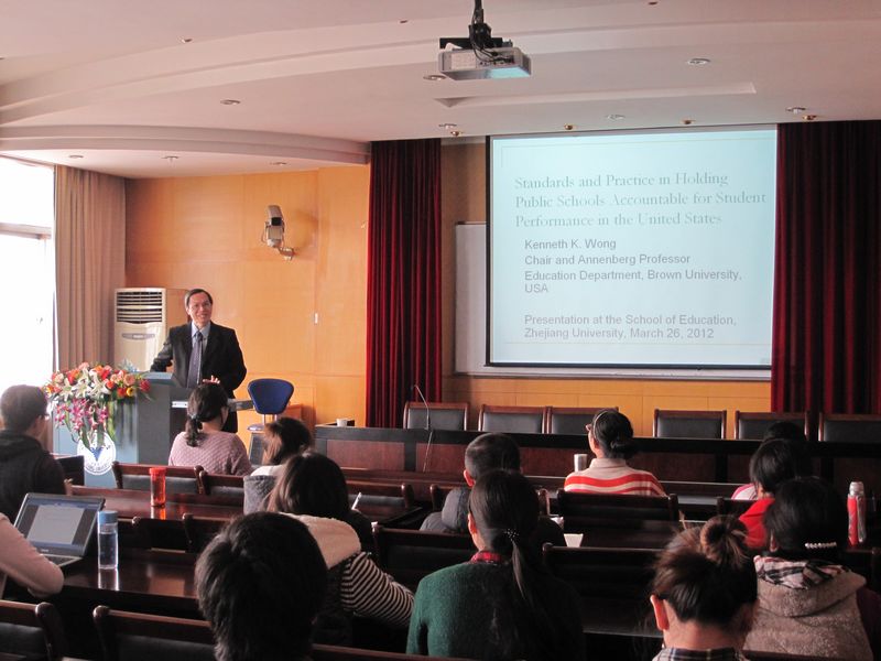 On March 26 and 27, 2012, Kenneth K. Wong, Professor and Chair of the Education Department at Brown University visited our college and made arrangements for further academic and educational cooperation.