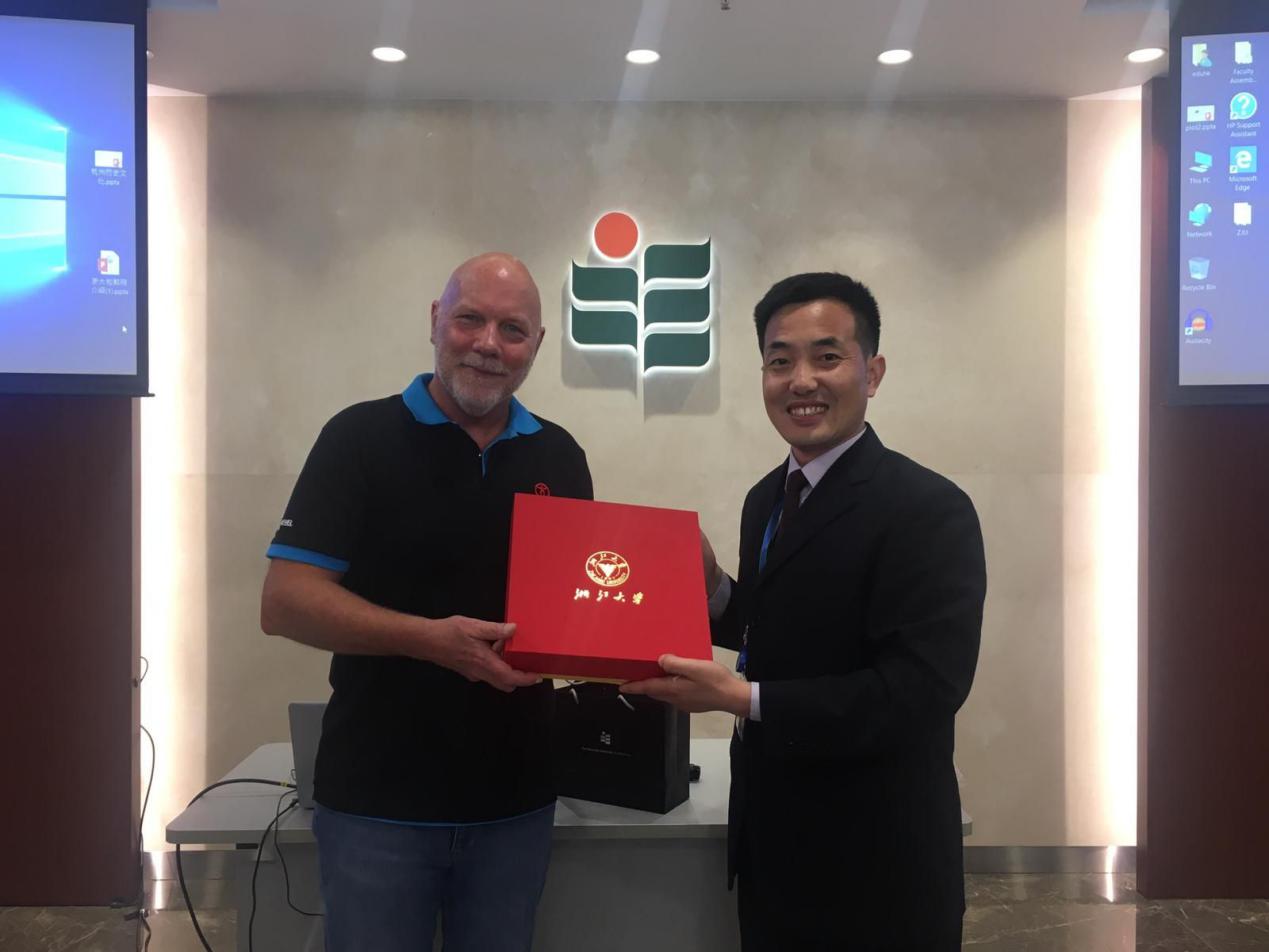 After the introduction, Allan Walker, the Dean of the Faculty of Education and Human Development in EduHK also showed himself on the scene. He expressed a warm welcome and sincere greeting to the delegation of College of Education of Zhejiang University. After that, representatives of the two schools exchanged gifts and took a photo to mark the occasion.
