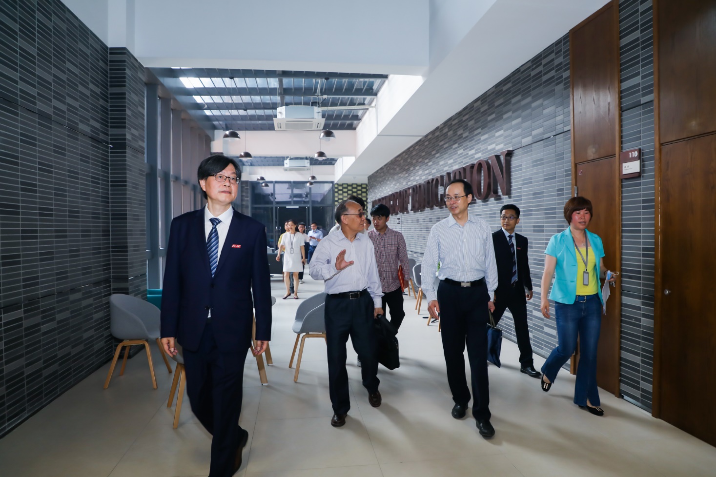 Senior Professor TIAN Zhengping and LIU Haifeng, Dean Gu Jianmin and Secretary WU Juhui, joined hands to open the door of the new building, marking that the new building was officially put into use.