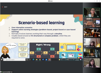On April 16th, Dr. Nanxi Meng, senior lecturer at University of North Texas, gave a lecture with the theme “Instructional Design for Corporate Setting: PBL and Scenario Based Learning Backward Designed”. Dr. Meng introduced corporate-oriented backward design, which means making the instructional design from learning outcomes, assessment, learning activities to content. Different from the traditional instructional design path, being instructional designers for corporates requires us to act as “learning architect”, “learning analysis”, “experience designer”, “complex concepts articulator”, “performance coach”, “learning and development expert”, “trainer” as well as “strategic development facilitator”. Therefore, Program-based Learning (PBL) and Scenario-based Learning (SBL) were emphasized as two proven and effective methods.