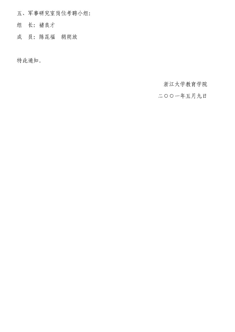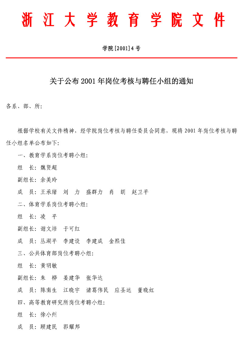 学院[2001]4号 关于公布2001年岗位考核与聘任小组的通知