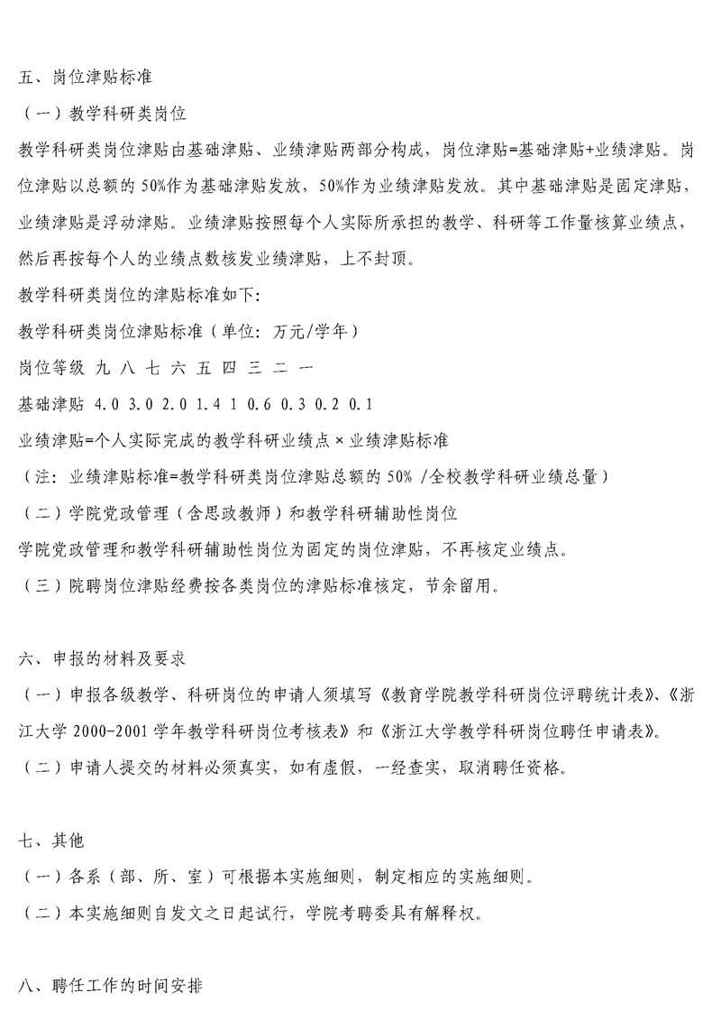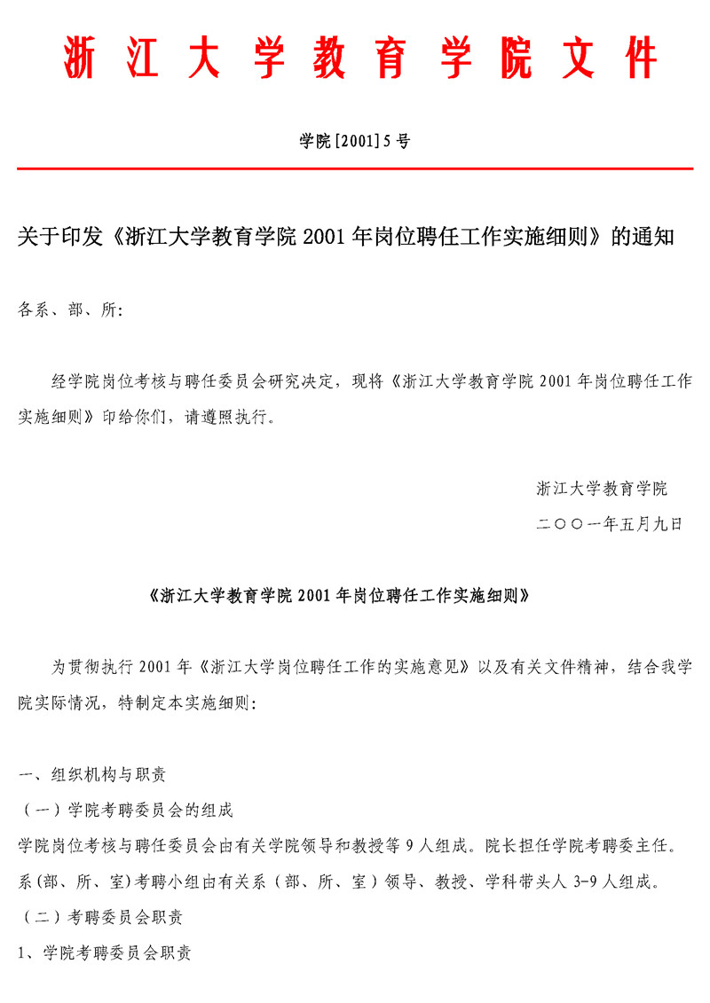 学院[2001]5号 关于印发《浙江大学教育学院2001年岗位聘任工作实施细则》...