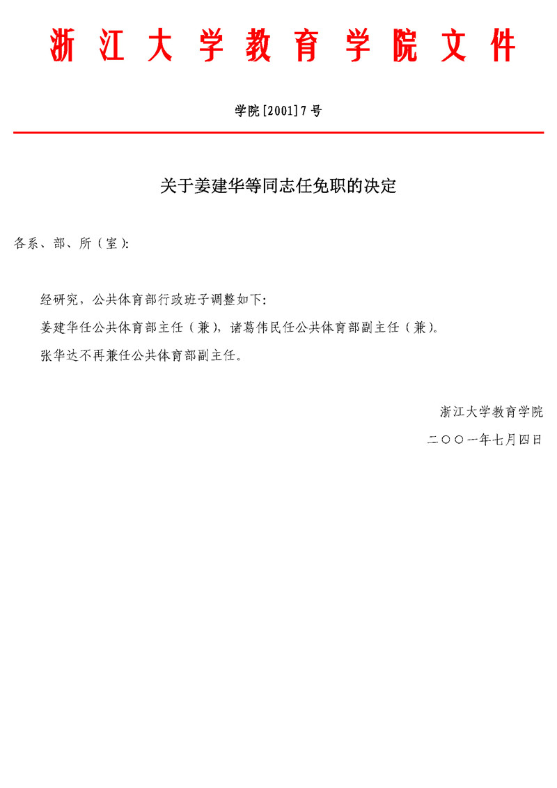 学院[2001]7号 关于姜建华等同志任免职的决定