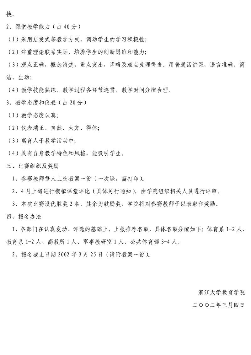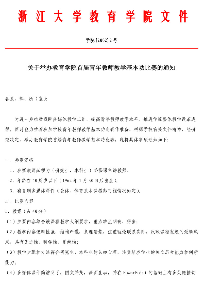 学院[2002]2号 关于举办教育学院首届青年教师教学基本功比赛的通知