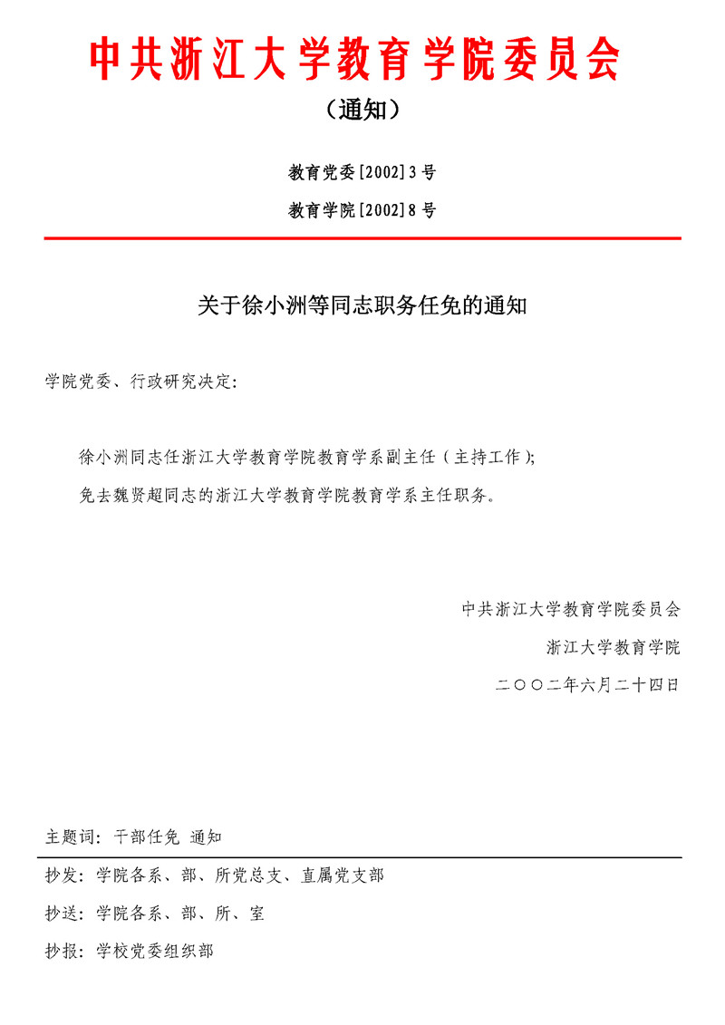 学院[2002]8号 关于徐小洲等同志职务任免的通知