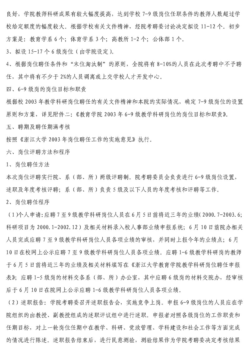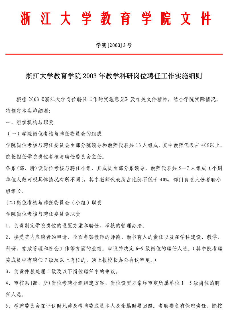 学院[2003]3号 浙江大学教育学院2003年教学科研岗位聘任工作实施细则