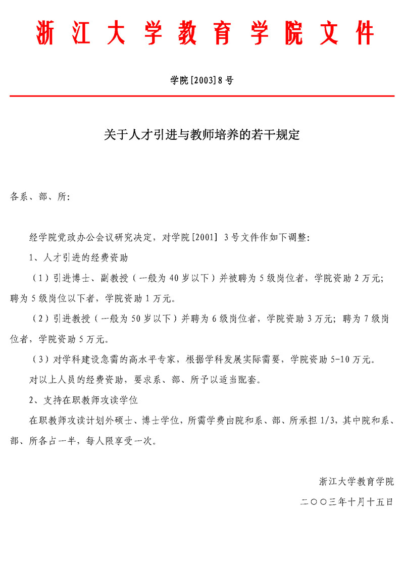 学院[2003]8号 关于人才引进与教师培养的若干规定