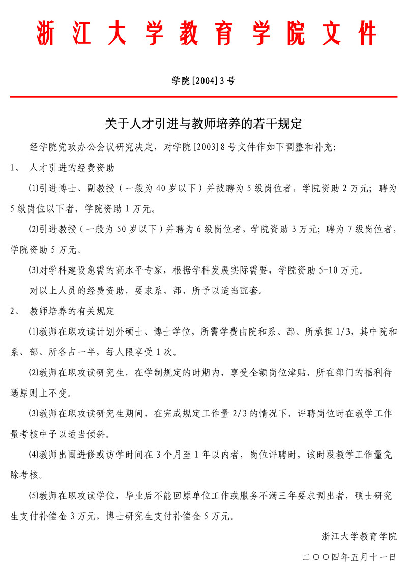 学院[2004]3号 关于人才引进与教师培养的若干规定