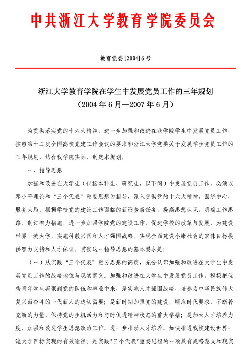 教育党委[2004]6号 浙江大学教育学院在学生中发展党员工作的三年规划
