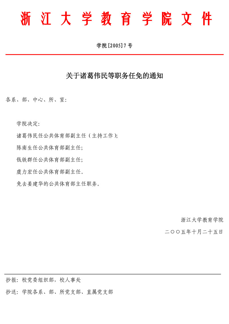 学院[2005]7号 关于诸葛伟民等职务任免的通知
